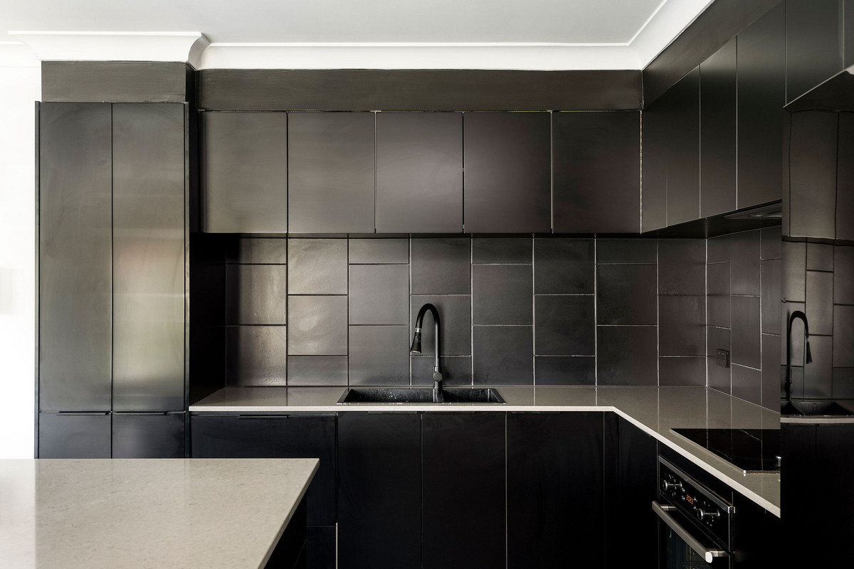– Kitchen with integrated dishwasher, caeserstone benchtops + electric cooktop and oven