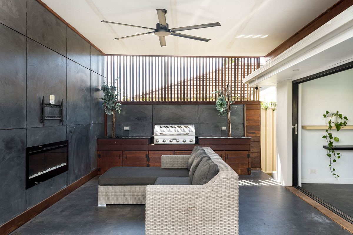 – Semi-enclosed alfresco area appointed with electric fireplace and ceiling fan
