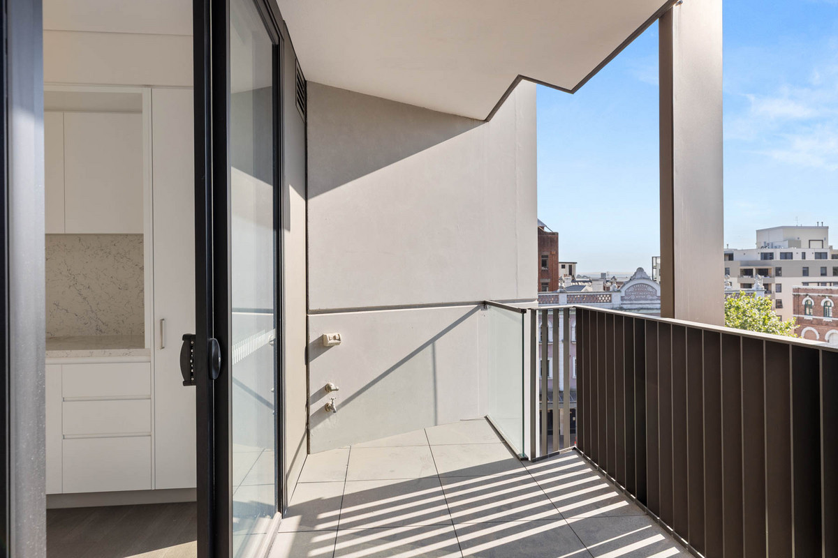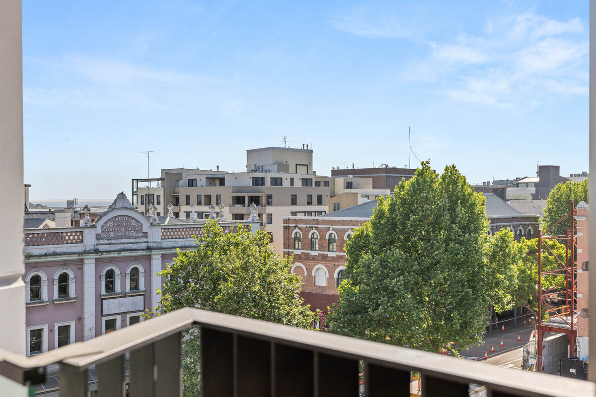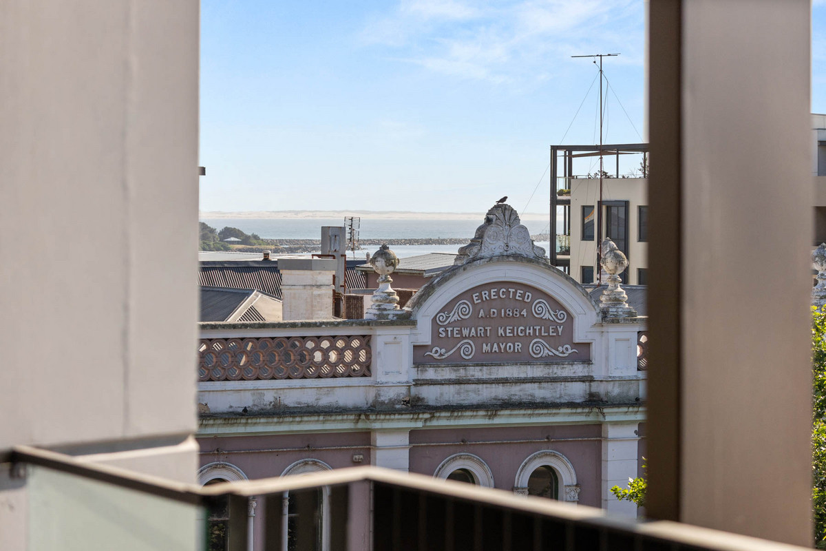 Inside, sleek engineered timber floors and marble benchtops set a refined tone, while Smeg appliances and ducted air-conditioning bring everyday comfort up a level. The open-plan layout spills onto a spacious balcony with an easterly aspect – perfect for morning sunshine, water glimpses, and views across to Christ Church Cathedral.